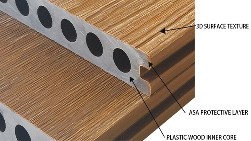 Wood Plastic Composite (WPC) is in de loop der jaren aanzienlijk geëvolueerd, met als belangrijkste onderscheid tussen de 1e generatie en de 2e generatie wpc-terrasplanken zijnde de toevoeging van een polymeerlaag in de laatste.Deze verbetering zorgt voor een ondoordringbare, omhullende beschermende afdeklaag.